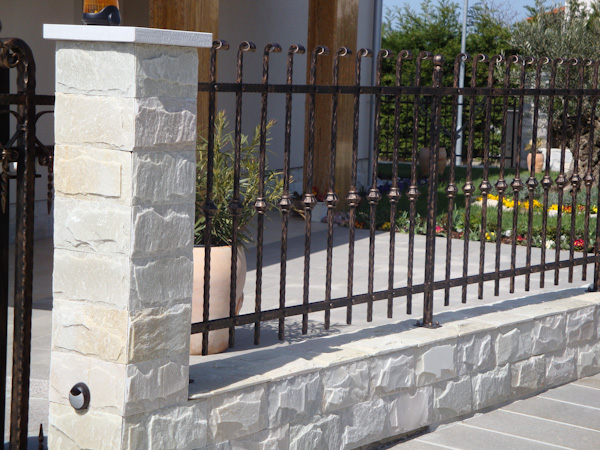Ograjo zaščitimo z vročim cinkanjem, nato jo pobarvamo z dvokomponentnim lakom, po želji jo še patiniramo, da ji damo rustičen izgled.